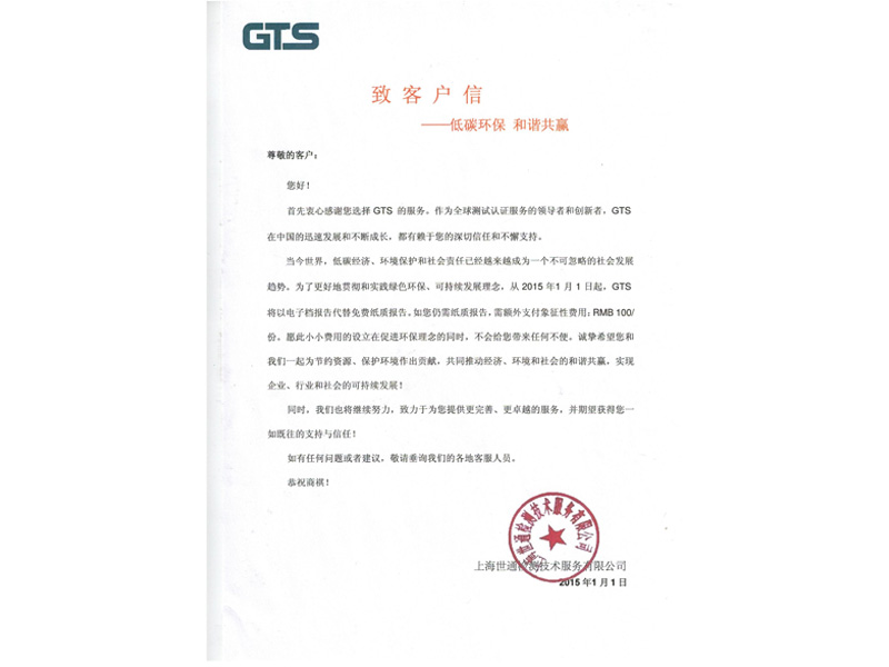Letter to customers